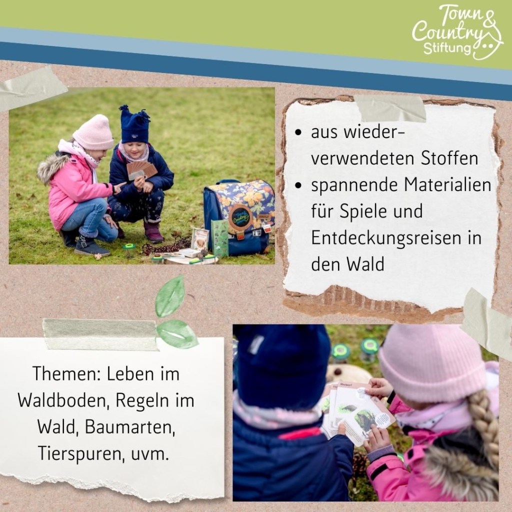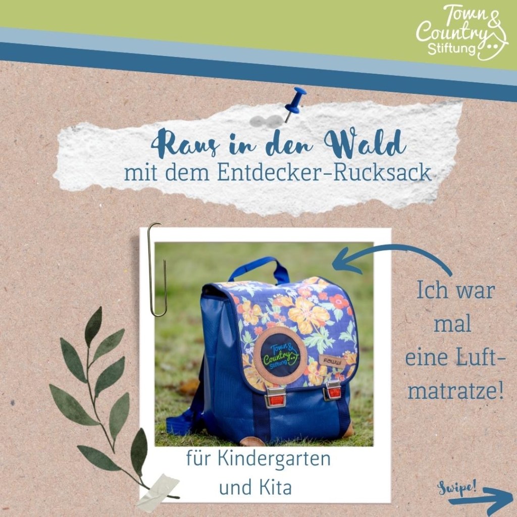 Dieser besondere, handgearbeitete Rucksack aus wiederverwendeten Materialien (Luftmatratzenstoff, Sportleder, Oldtimerbezüge) ist gepackt mit spannenden Utensilien, die den nächsten 𝑊𝑎𝑙𝑑𝑎𝑢𝑠𝑓𝑙𝑢𝑔 unvergesslich werden lassen. Wissens- und Abenteuerspiele rund um die Waldthemen Vielfalt, Waldregeln, Baumarten, Tierspuren und vieles mehr warten auf die Kinder. ![]()