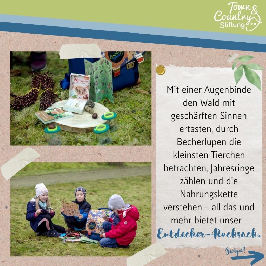 Am 24. August besuchten die Stiftungsbotschafter der Town & Country Stiftung unsere Kita „Kleine Strolche“ in Menteroda und überreichten unseren Kindern den Entdecker-Rucksack „Raus in den Wald“.